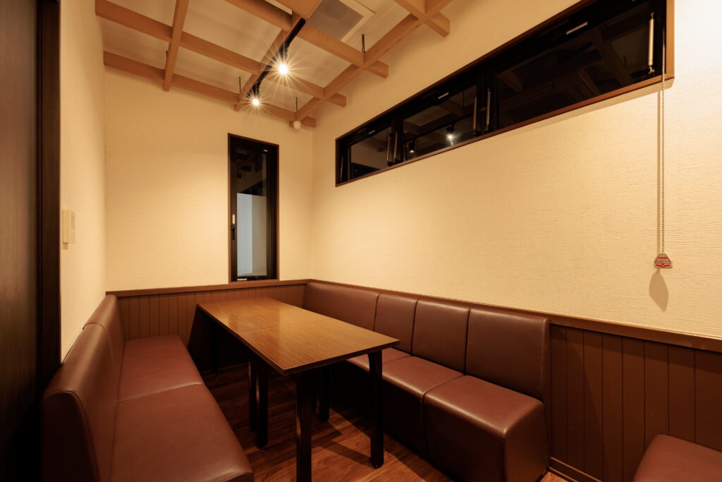 個室では、大切な方との特別な時間をお過ごしいただけます。どちらのお席でも、心地よい空間でお料理とお酒をお楽しみください。